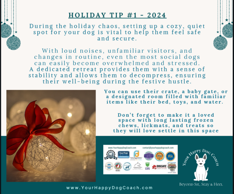 Here are my top ten favorite tips to have a safe and happy Holiday for 2024 with your pups.